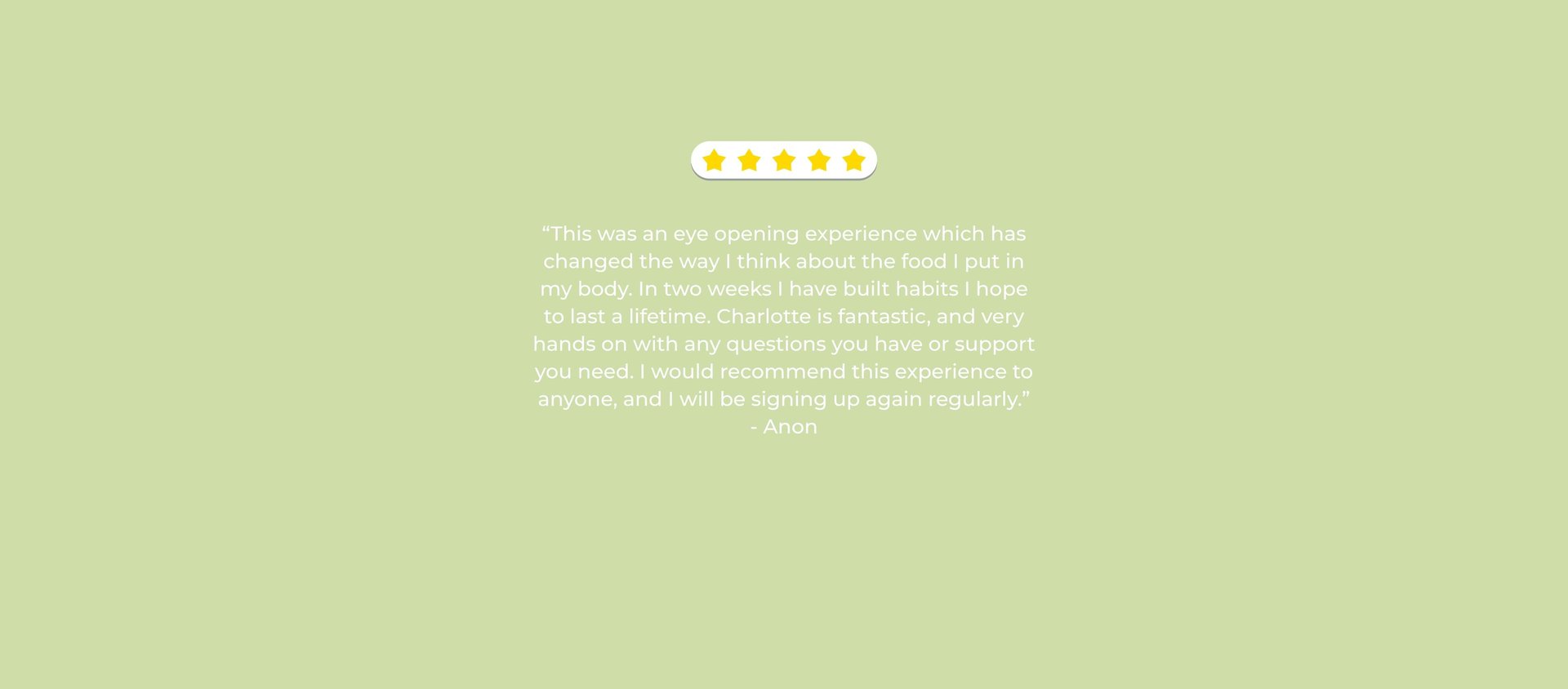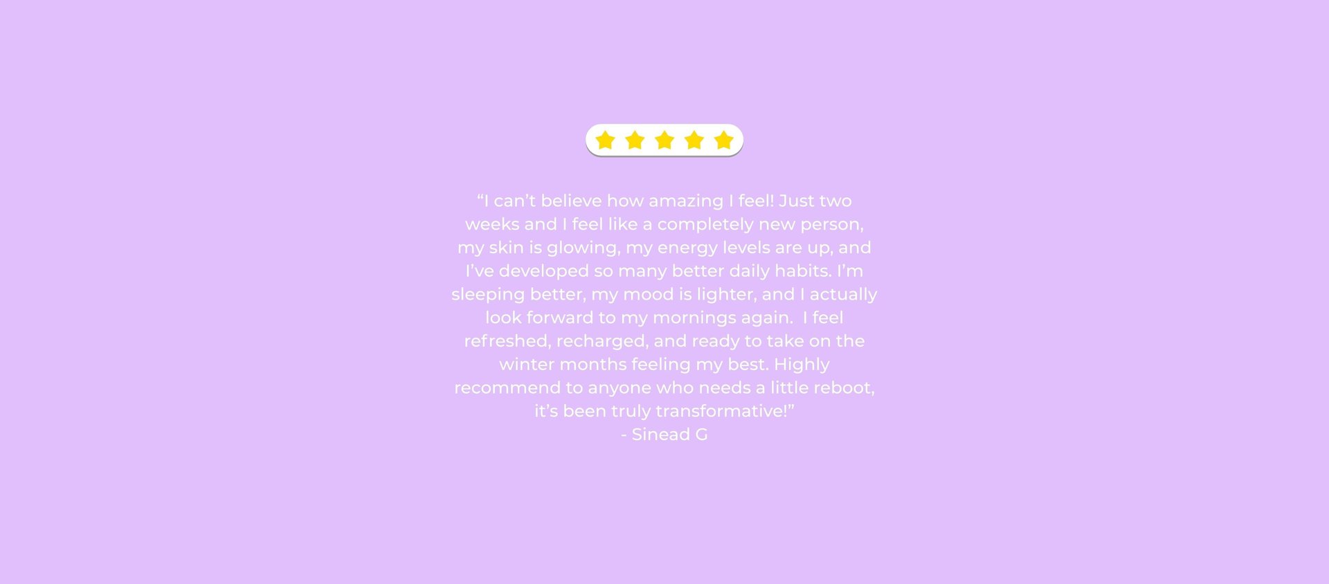 "An incredible two weeks, I haven't felt this good in a long time. I loved being in a group for accountability. Worth every penny"